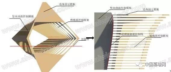 3、BIM技術在復雜幕墻工程中的應用,通過BIM技術指導幕墻工程施工,做到空間定位參數化信息化,批量化,保證了形體造型,幕墻工程構建參數化誤差值控制在5mm以內,空間尺寸誤差率控制在3%以內;