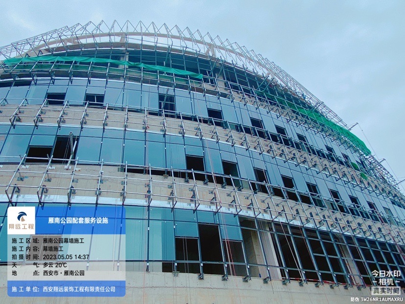 雁南公園服務配套設施項目是我司重點工程之一,該項目施工任務重,工期要求緊,公司領導高度重視,所有人員全力以赴為其質量、工期、進度保駕護航;在公司領導的帶領及支持下,項目部迅速組織勞務隊伍進場,現階段已完成圖書館玻璃幕墻3000余平米,安裝進度達到80%,鋁板龍骨完成9000余平米,安裝進度達到90%,文化館玻璃幕墻2000余平米,安裝進度達到60%,鋁板龍骨完成1500余平米,安裝進度達到15%,在今后的施工中,項目部及作業人員發揚吃苦耐勞精神,克服種種困難,戰勝各種不利因素,積極推進施工進度。